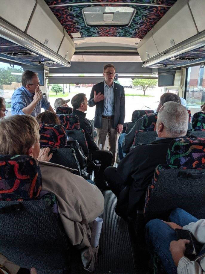 State Representative Shannon Francis helped organize a tour of several business and quality of life projects taking place in Liberal. One key takeaway from this community was the large amount of synergy with the local agriculture economy, which helps create jobs and prosperity for the area. The bus tour began at Lyddon Aero Center, where Liberal City Manager Cal Burke discussed the status of the air field and essential air service provided through SkyWest. Burke also showcased the new baseball and soccer fields that are helping to provide recreational space and activities for residents as well as travel and tourism opportunities through the hosting of sporting events and tournaments that bring in out-of-town guests. Renae Hickert, Superintendent of USD 480, joined the bus tour to discuss the growth happening in the school district. She highlighted the results of a recent bond issue as well as the school redesign project. Another key educational institution discussed during the bus tour was Seward County Community College. Staff from SCCC discussed the success of several different programs for industry-aligned workforce training and development as well as targeted success initiatives for first-generation college students. SCCC plays a key role in developing a skilled workforce in Kansas. Representatives from Southwest Medical Center also highlighted the outstanding medical facility that serves Liberal and the surrounding area. The Village at the Plaza Apartments were an outstanding example of the Rural Housing Incentive Districts at work! They also utilized state grant funding to develop housing for individuals at the moderate-income level. Another housing project on the tour was a development specifically for single family housing for the workforce. Each of these projects helps ensure that there is adequate and attractive housing available for individuals and families to live and work in Liberal.