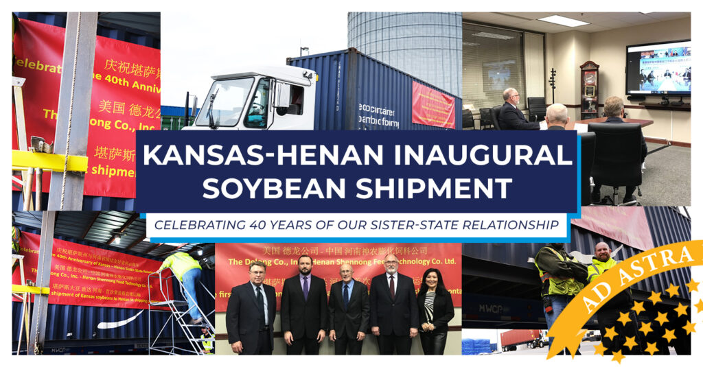 The soybean shipment resulted from the 40-year Sister-State relationship between the State of Kansas and the Chinese province of Henan. In May of 1989, Kansas Governor John Carlin and Henan Governor Liu Jie signed an agreement establishing friendly Sister-State relations to develop cooperation, facilitate diplomacy and foster a strong business connection. In September of 2021, Kansas and Henan celebrated the 40th anniversary of this long-standing relationship with a virtual event that included top political, economic, agricultural and educational leaders from Kansas and Henan.