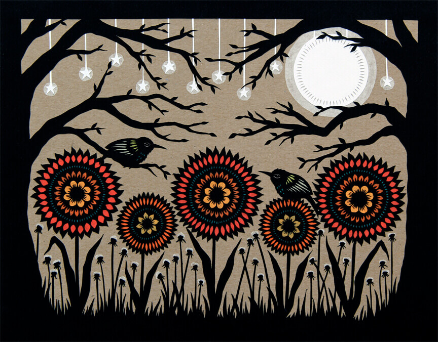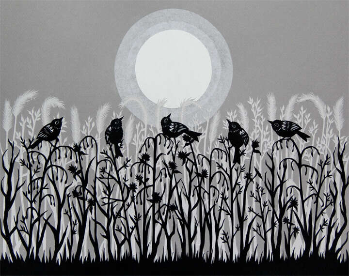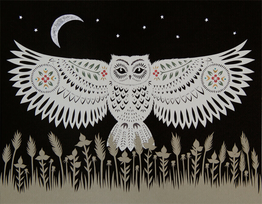 Angie Pickman is a nationally recognized cut paper artist that combines the art of traditional paper cutting with collage to create intricately detailed works of art and animations. She received her master’s degree in 2004 from Tisch School of the Arts at New York University, which is where she first learned of the art of silhouette animation artist Lotte Reiniger (1899 – 1981). Her love of nature and the tranquility of the rural terrain, as well as Reiniger’s style and technique, inspired Pickman to set off on the artistic path that she continues today. She exhibits at galleries and art fairs nationally, does illustration, animation and design work, conducts public presentations on her art, and teaches various art classes and workshops. Her work has been featured in Midwest Living and Martha Stewart Living magazines, and her animation work was featured in Daughters of the Forest, a PBS documentary, in the summer of 2016.