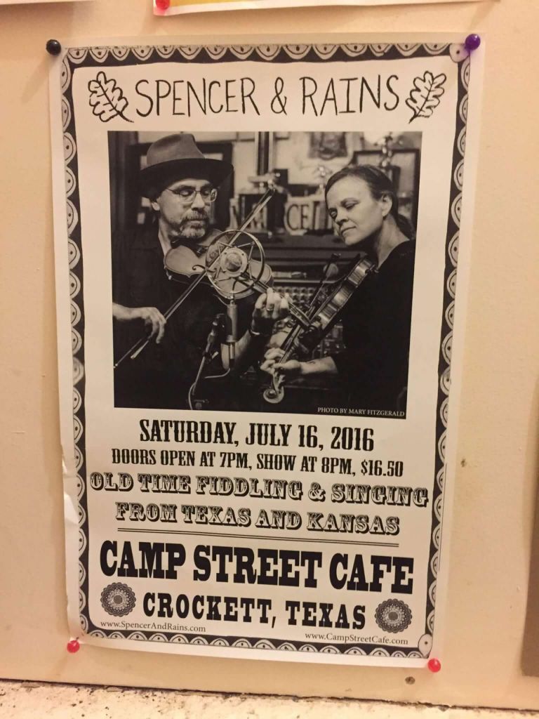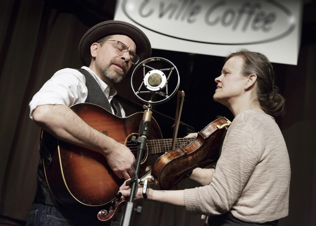 Spencer & Rains play old time music. Tricia Spencer is a Kansas fiddler who grew up learning the tradition of old-time music from her Grandparents. Howard Rains is a Texas artist and fiddler whose twin obsessions are painting and playing traditional American fiddle music. Together, Spencer & Rains play old time fiddle tunes and sing old songs in the style of their home states while also exploring other American regional styles of fiddling. Both multi-instrumentalists deeply absorbed in traditional music, Howard and Tricia preserve, present, and teach old time music while at the same time making it their own. Not only have they played dances, festivals, and house concerts across the country and across the globe, Spencer & Rains are highly sought after as instructors and love to teach old time music at camps, workshops, and private lessons.
