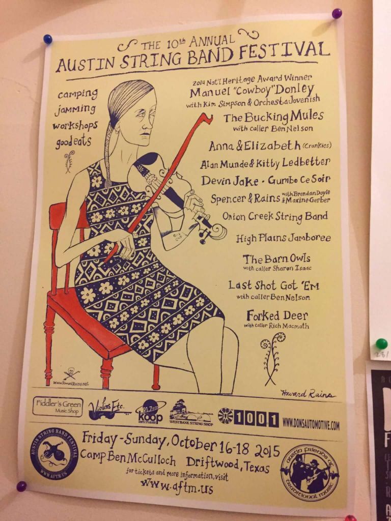 Tricia and Howard’s performances and workshops are as much a lesson in the history of American and midwestern fiddle and folk music as they are musical entertainment. Their performances are filled with personal stories and histories of the music and musicians from Kansas and surrounding states. Their art work depicts these same musicians in their unique, folk art style. To see some of the workshop descriptions Tricia and Howard have done across the country and across the globe click on the links below. Spencer & Rains have taught workshops and classes at the UCLA School of Music, UC Berkeley School of Music, Columbia University, The Festival of American Fiddle Tunes, The John C. Campbell Folk School, The Alabama Folk School to name just a few examples.